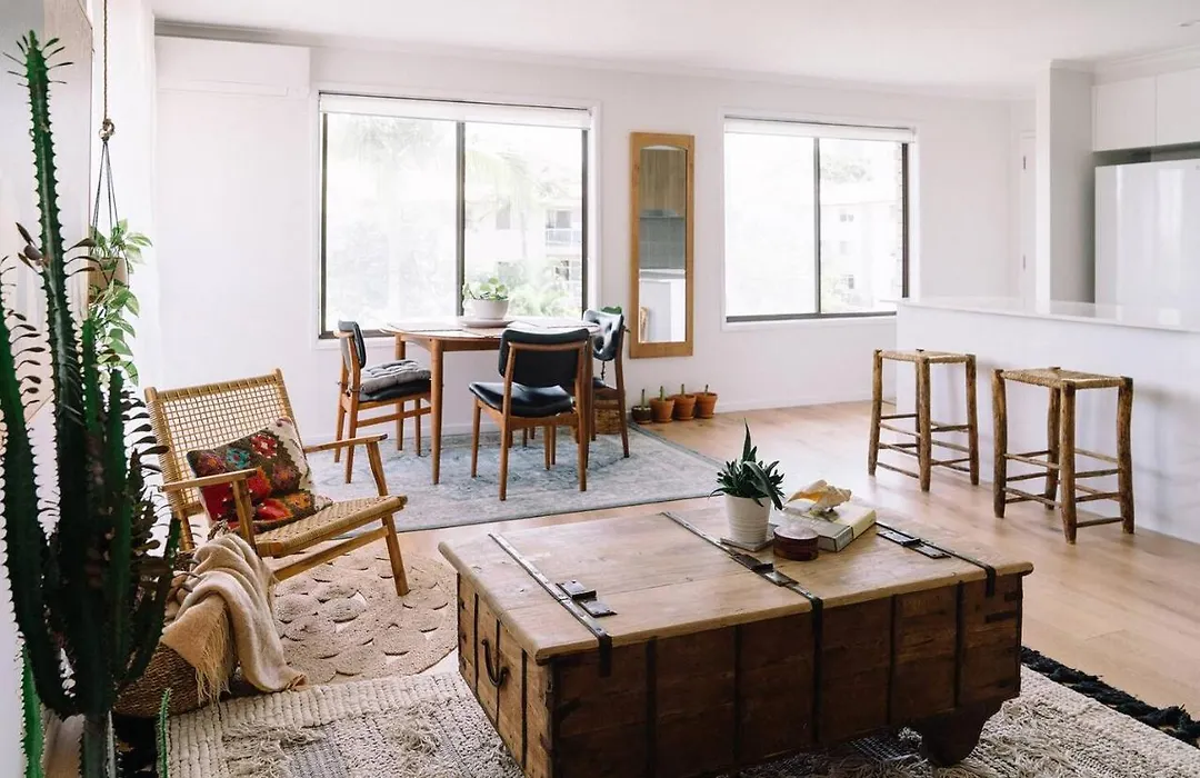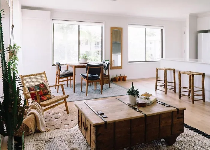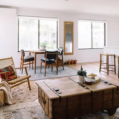 Das Apartment Breezy Bohemian Abode - Minutes From Burleigh Beach bietet einen Wohnbereich, einen Balkon und eine Küche mit einer Klimaanlage für höchsten Komfort. Diese Unterkunft verfügt über ein Badezimmer mit einem Haartrockner und Badelaken. Außerdem gibt es eine getrennte Toilette und eine Dusche usw.